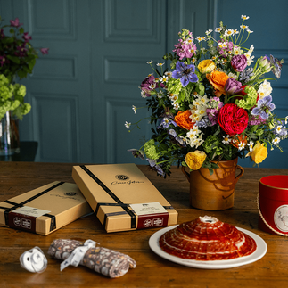 Fusionando las flores y el jamón, las dos firmas han creado el mejor de los regalos para la mujer más importante de nuestras vidas. Disponible en dos formatos, con él conseguiremos alegrar su olfato con el perfume de las flores, además de deleitar su paladar con unos cortes de jamón.
